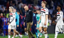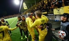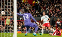 Rashford, the beneficiary of Alejandro Garnacho dropping to the bench, was a force, as illustrated by another gallop along the left and pass to Zirkzee; then a cheeky nutmeg of Ricky van Wolfswinkel that drew “oohs” from the faithful. He was also part of a three-man press involving Zirkzee and Fernandes whenever Unnerstall looked to begin from the back and, also, the first to congratulate Eriksen on the opener: a bullet of a finish that flew into the left corner.