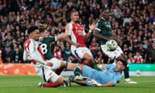 There was spoiling, too, from Manuel Ugarte who, on full debut, poked possession away from Youri Regeer at halfway in the kind of act for which he was bought, as did Noussair Mazraoui when Anass Salah-Eddine swooped in along the left byline. The challenge led to a corner that Michel Vlap flashed in from the left. The ball bounced towards the far touchline, Diogo Dalot was robbed by Bart van Rooij, and he fed Lammers. Twente’s No 10, in space, spooned the ball wide of the left post.